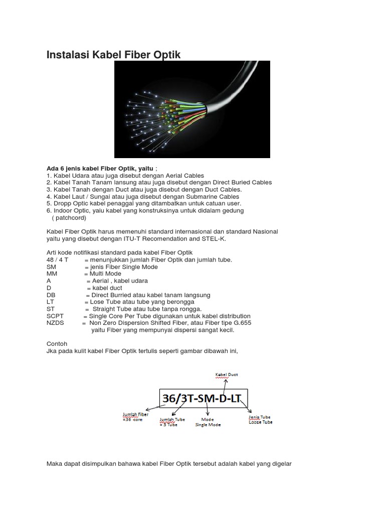 Sedangkan sumber cahayanya dapat berupa sinar laser ataupun sinar led. Kabel bawah laut secara fungsi mempunyai dua jenis yaitu menghantarkan daya atau data. Fiber optik single mode. Duct cable kabel duct adalah kabel fiber optik yang instalasinya menggunakan pelindung pipa duct subduct kabel ini dipendam dalam tanah underground.