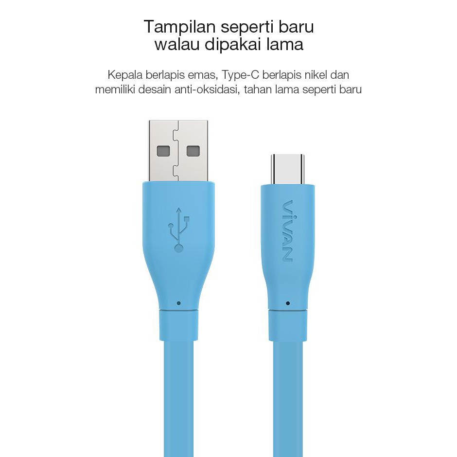 Kabel type c vivan cbc100s 2 4ampere dan 100cm non packing pembelian retail tidak bisa pilih warna original 100 dan garansi resmi fitur.