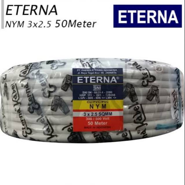 Cari produk kabel roll lainnya di tokopedia. Jual kabel eterna nym 3x2 5 dengan harga rp12 500 dari toko online new shop jakarta barat. Deskripsi eterna kabel nym 3 x 2 5 50m 3x2 5 50m 100 original full 50 meter ready stock pengiriman setiap senin jumat 08 00 12 00 wib order di atas 12 00 wib berpotensi dikirim hari berikutnya. Pembayaran mudah pengiriman cepat bisa cicil 0.