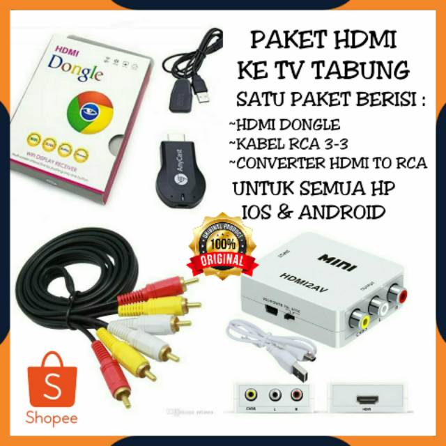 Paket anycast dongle hdmi to av rca untuk tv tabung free kabel rcarp185 000. Jelas dan tidak pecah. Konektor hp ke tv kabel hdmi 2m. Selain itu ada juga jenis kabel hdmi to hdmi yang membantu perangkat laptop dengan port hdmi terkoneksi dengan perangkat lain seperti smart led tv.