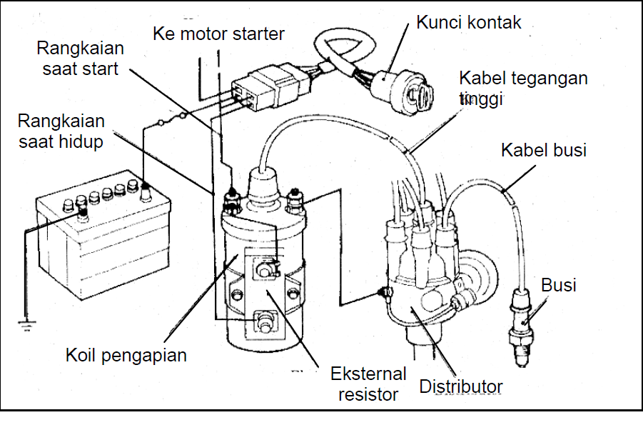 Kabel penghubung busi motor. Kabel busi memang dapat usang terutama pada rangkaian di dalam penutup boot penghubung busi dan koil. Nah agar tidak keliru gantilah kabel secara satu per satu mulai dari kabel yang paling depan hingga kabel paling belakang. Pada beberapa motor biasanya terdapat lebih dari satu koil. Rumah steker terbuat dari ebonit dan karet khusus yang dipasang pada ujungnya untuk mencegah udara lembab masuk atau air ke dalam steker yang dapat mengakibatkan gangguan pengapian kerugian tegangan.