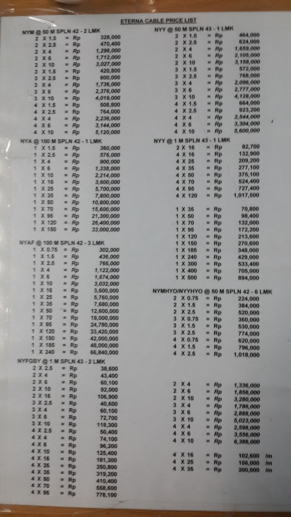 Anda juga akan dapat membandingkan setiap jenis dengan harga kabel eterna per meter. Eterna nya 1 x 4. Harga kabel listrik agustus 2020 terbaru eterna superme. Harga kabel listrik informasi yang membahas harga kabel instalasi rumah semua jenis seperti kabel nyy nym nya.