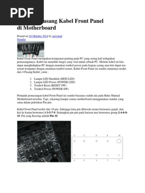 Fungsi kabel front panel kabel front panel terdiri dari beberapa kabel yang memiliki fungsi sendiri sendiri kabel kabel tersebut diantaranya. Kabel hdd kabel ini berfungi untuk menyalakan lampu hard disk drive yang sedang berkeja. Oleh karena itu ketika anda menekan tombol bertuliskan power pada komputer maka mesin di dalam komputer akan mulai bekerja dan lampu led. April 1 februari 2.