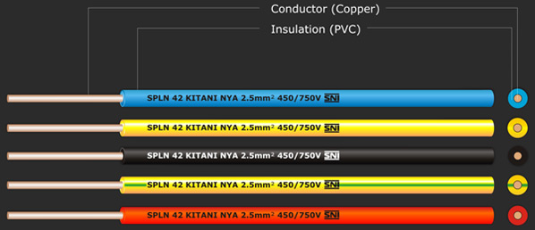 Kode warna isolasi. Kabel kawat tembaga ini ada beberapa macam diantara yang umum dipakai adalah tipe kabel nya nym dan nyy. Kode warna isolasi ada warna merah kuning biru dan hitam. Pastikan jenis kabel nym berukuran minimal 3 x 2 5 mm yang terpasang untuk setiap titik stop kontak dan 2 x 1 5 mm untuk setiap titik lampu.